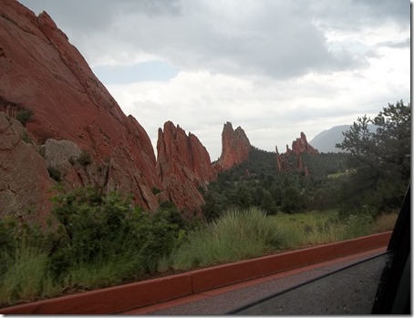 There is an interesting section of natural formations in Colorado Springs called the Garden of the Gods. WE visited it a few years ago and the weather was great. This year all we could do was drive around. We still did see the Balancing Rock and many others from the car.